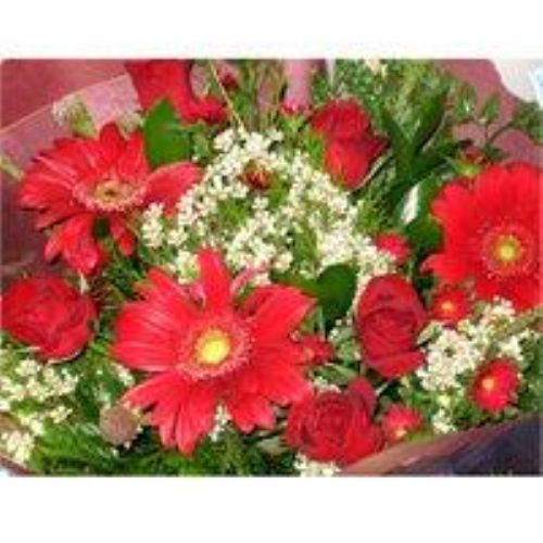 זר יפה מאד, המורכב מגרברות, אסטרות שורש, ומגוון פרחים נוספים(ורדים משולבים בזר שמחירו החל מ-160 ש"ח ומעלה ובהתאם למלאי הקיים בחנות).