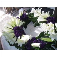 זר אבל יוקרתי, הזר משלב שושן צחור פתוח בסיגנון קלאסי, השזורים על גלגל אבל יעודי